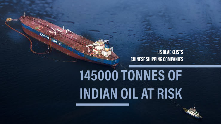 The US has put sanctions on several Chinese companies and their top officials for allegedly shipping Iranian oil, putting dozens of supertankers off limits to western energy traders. As a direct impact of the blacklisting of Chinese shipping company Cosco, 145,000 tonnes of Indian Oil is at risk.
