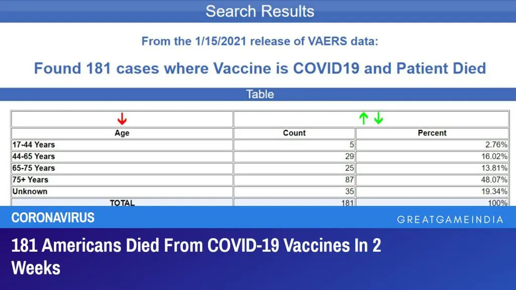 According to the database, 181 Americans died from COVID-19 vaccines in 2 weeks.