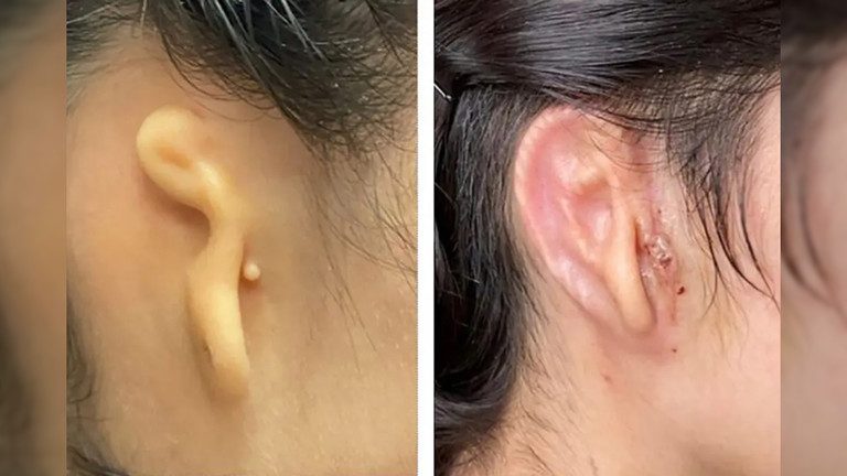 A 20-year-old woman is said to be the first person to have a successful ear transplant using 3D printing, which uses the patient’s own cells to build the implant.