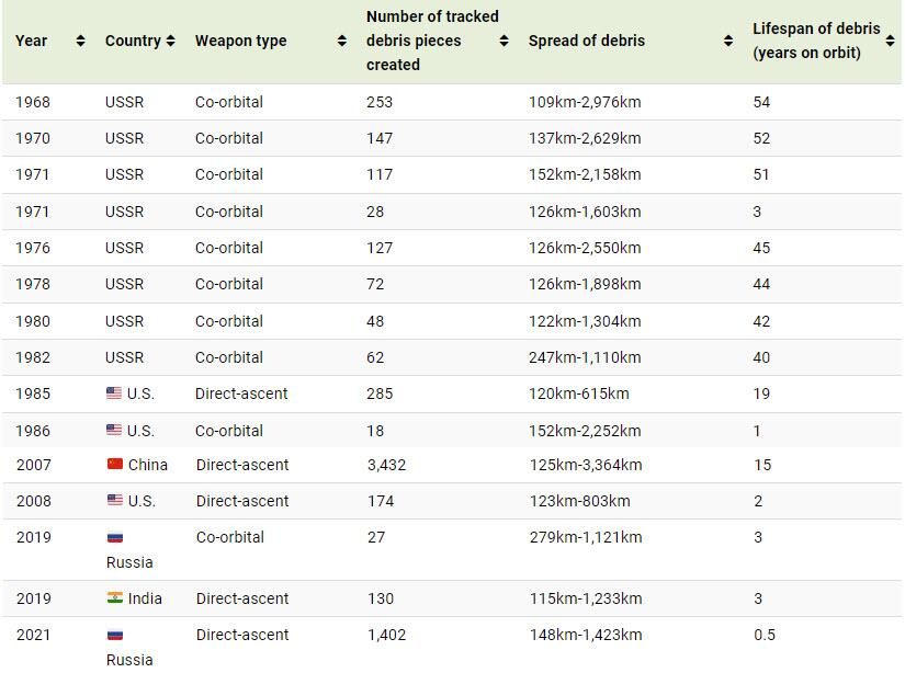 These four countries have successfully executed 15 destructive ASAT tests since 1968, resulting in thousands of pieces of tracked debris scattered across vast distances.