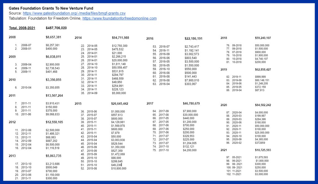 What is understood about New Venture Fund’s dark money financing is that it is sponsored by the Bill & Melinda Gates Foundation to the tune of hundreds of millions of dollars.