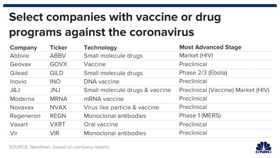 - VACCINE: Biotechs Working On Coronavirus Vaccine