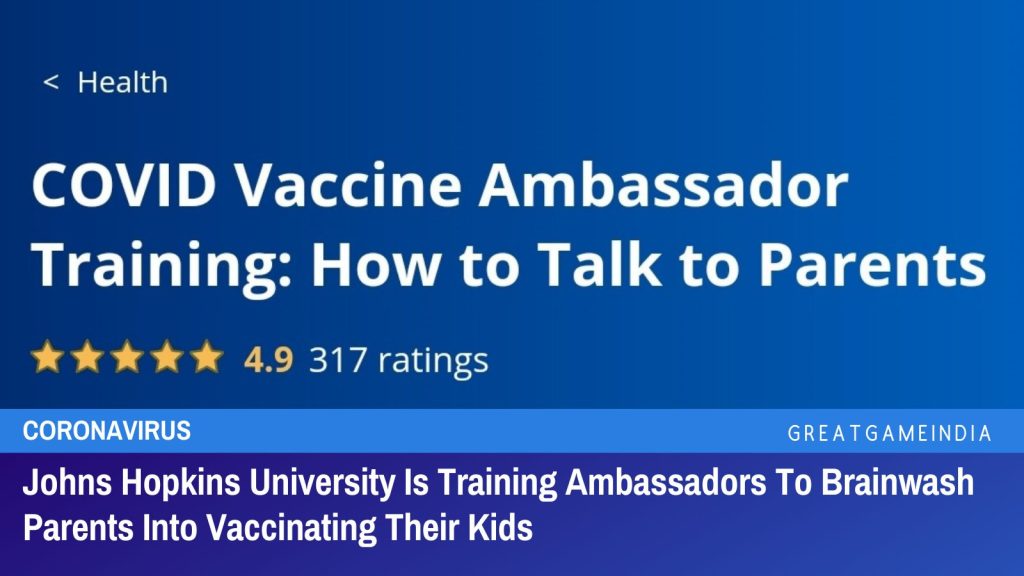 Johns Hopkins University has set out to train ambassadors so they can brainwash parents into vaccinating their kids. The course ignores the most common criticisms aimed at the COVID-19 vaccine.