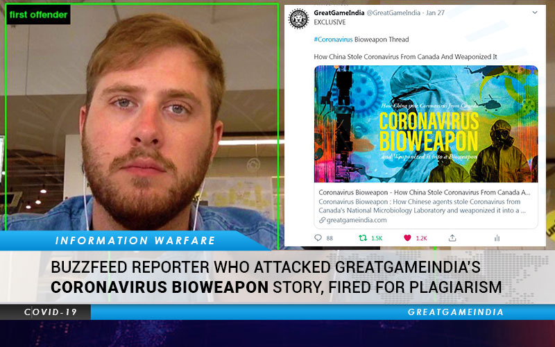 In January this year, GreatGameIndia published a story Coronavirus Bioweapon, which has been at the center of the debate on the origins of COVID-19. Even without any official investigation, a section of mainstream media jumped to debunk the story. Within four days, Ryan Broderick, a BuzzFeed News reporter published a lengthy “fact-check” style piece attacking the story and branding us an “Indian conspiracy theory site”. Ryan’s story was one of the first on the issue and and most of the “fact-checkers” picked-up from there. Ryan has now been fired for plagiarism for the same story, including many others. Meanwhile, new evidence have emerged corroborating our story with international investigations launched into the questionable “gain-of-function” experiments at the epicentre Of Coronavirus – the Wuhan Institute of Virology.