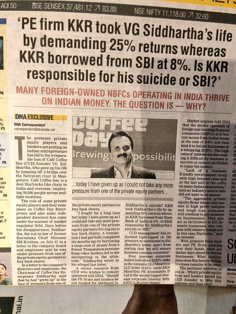 According to a report published in the DNA, foreign private equity firms like KKR borrow money from Indian Banks at 8-9% and then lend it back to Indian businesses at a whopping 20-25% – the high rates of interest making it difficult for native Indian business to survive or remain profitable to repay the lenders. Many foreign owned NBFC’s operating in India thrive on Indian money – the question is WHY?