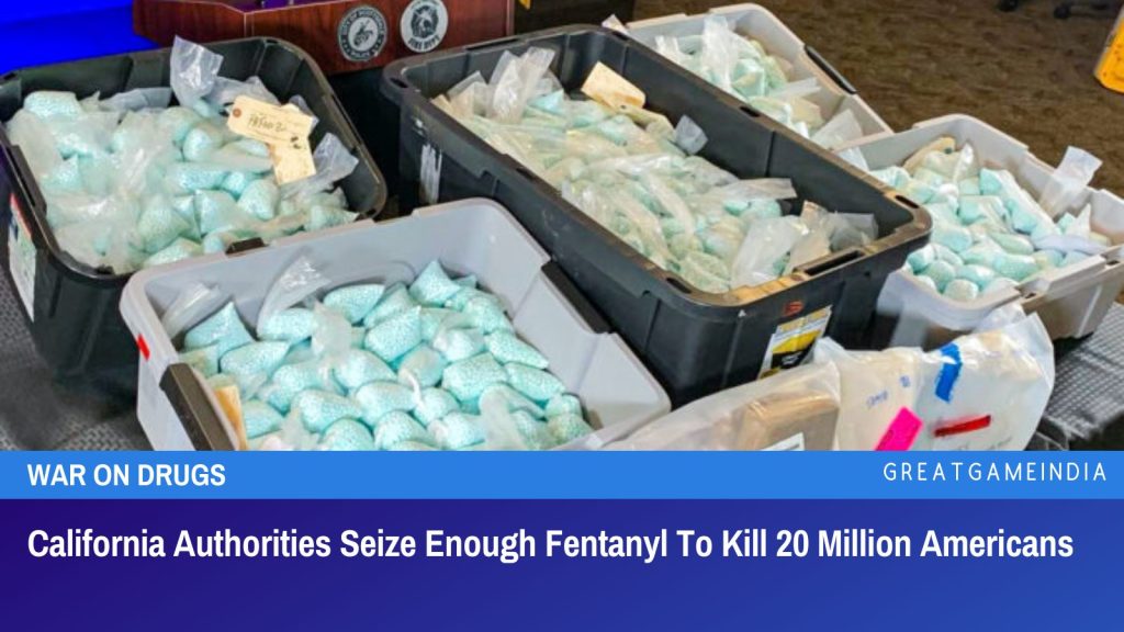 California authorities havr seized enough fentanyl to kill 20 million Americans. Fentanyl has a potency of 50 to 100 times that of morphine.
