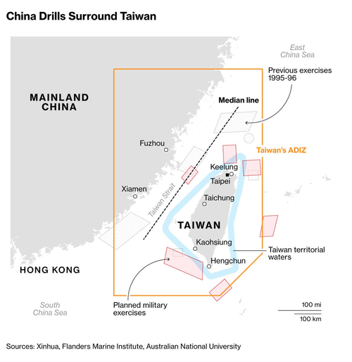 Around-Taiwan PLA exercises (image source: Bloomberg Graphics):