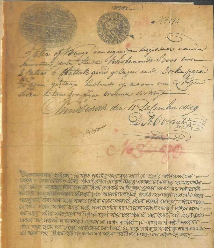 The villagers had received pattas, or title deeds, from the Dutch zamindars. These made sure that the peasants received land on lease in exchange for rent payments, which needed the zamindar’s seal and signature. When a person died and there was a disagreement over a plot of land with a dwelling, the zamindar was required to step in and make arrangements for the inheritance or sale of the property.