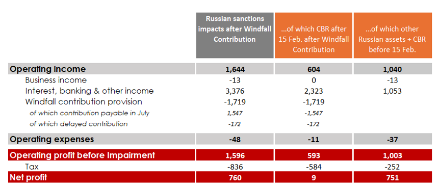 - The remainder of the profits related to sanctioned assets are being put aside as an important buffer against current and future risks.