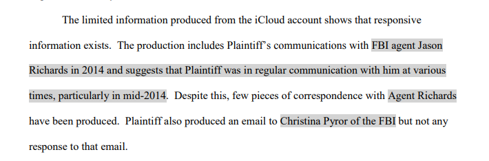 FBI agent Jason Richards knew about the victim since atleast 2014.