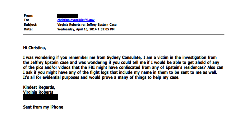 The minor victim was asking the FBI for the evidence (photos and videos) they seized from Epstein so she could prosecute her civil case. Yet, no action was taken.