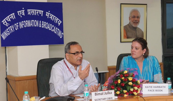 Another meeting was arranged between India’s Information & Broadcasting Secretary, Shri Bimal Julka with Katie Harbath, Global Manager for Facebook’s Politics & Govt. Outreach who ran Facebook’s secret unit.
