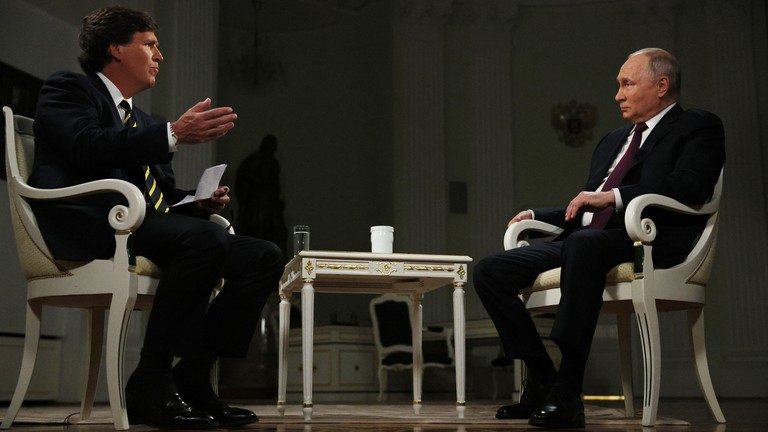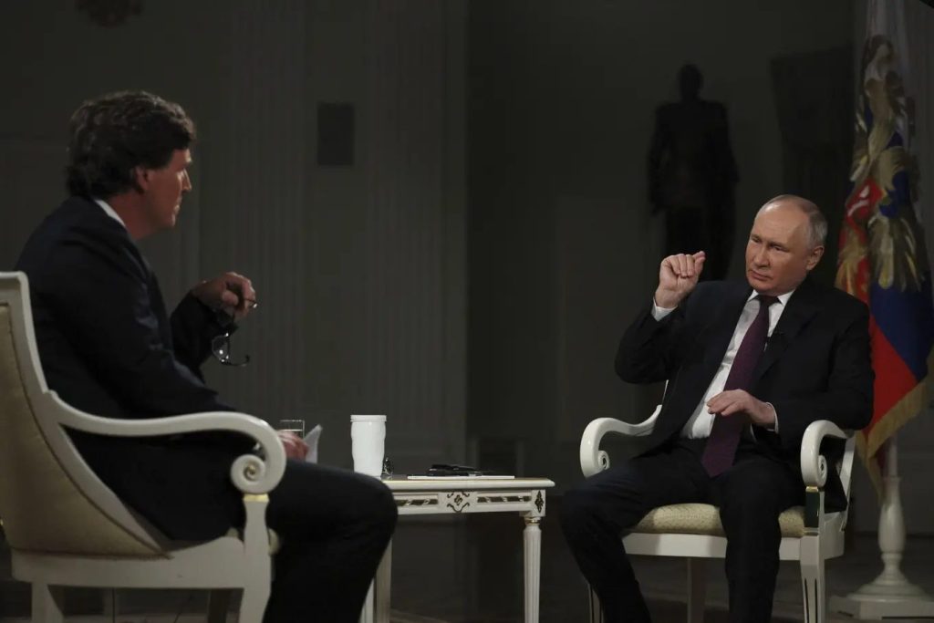 Tucker Carlson interviewed Putin in Russia, and the interview is available for viewing at tuckercarlson.com, focusing on the conflict in Ukraine.
