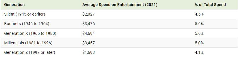 The fact that Gen Zers spent the least on entertainment could be attributed to the types of entertainment that this age prefers. For instance, a study indicated that only 15% of respondents aged 13 to 19 watch cable TV, whereas 51% of them watch videos on Instagram on a weekly basis.
