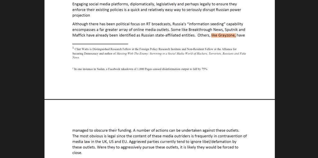 In addition to military strategies, Project Alchemy also plotted to control information at home in the UK. As prices rose due to the war and people began to feel the impact of the conflict, the group knew that public support for the war might decline. They proposed a campaign to shape public opinion and attack critical media outlets. This included legal pressure on independent outlets like The Grayzone, accusing them of spreading Russian propaganda.