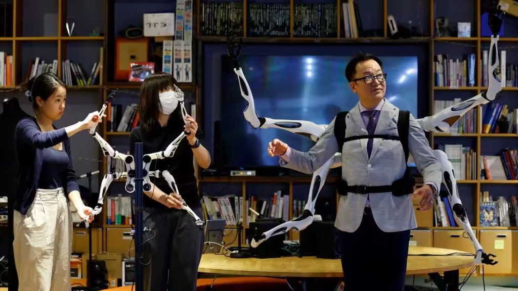 What would society look like if cyborg body parts were freely available for use like roadside rental bicycles? Masahiko Inami’s team at the University of Tokyo have sought to find out by creating wearable robotic arms. (Source: Reuters)