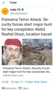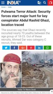 - The very first photo of the mastermind of Pulwama attack Abdul Rashid Ghazi was reported by India TV. It was of a person by the same name already killed in 2007. What was the source of that photo?