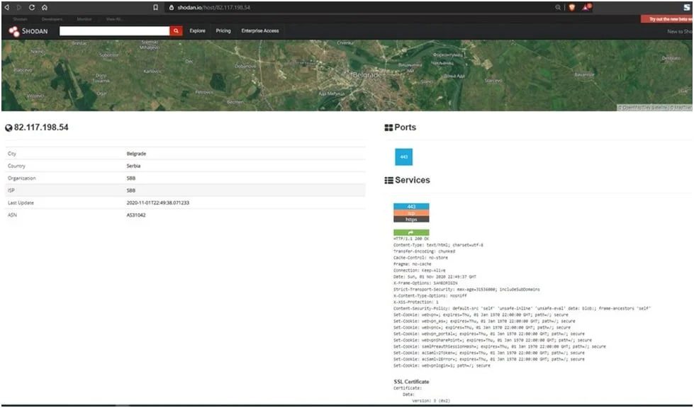 Dominion software’s external network is configured to the Serbian IP address. The internet network being used by that IP address is SBB. The IP address leads us to a location in Belgrade, Zoran Djindjic Boulevard. In the building located at the aforementioned address we can find multiple companies – Opportunity Bank Serbia, internet provider EUnet, but also the corporate headquarters of the leading Serbian cable and internet provider SBB. Several other companies belonging to United Group, which is also the owner of SBB, are located at that address, such as Sport Club and Nova S.