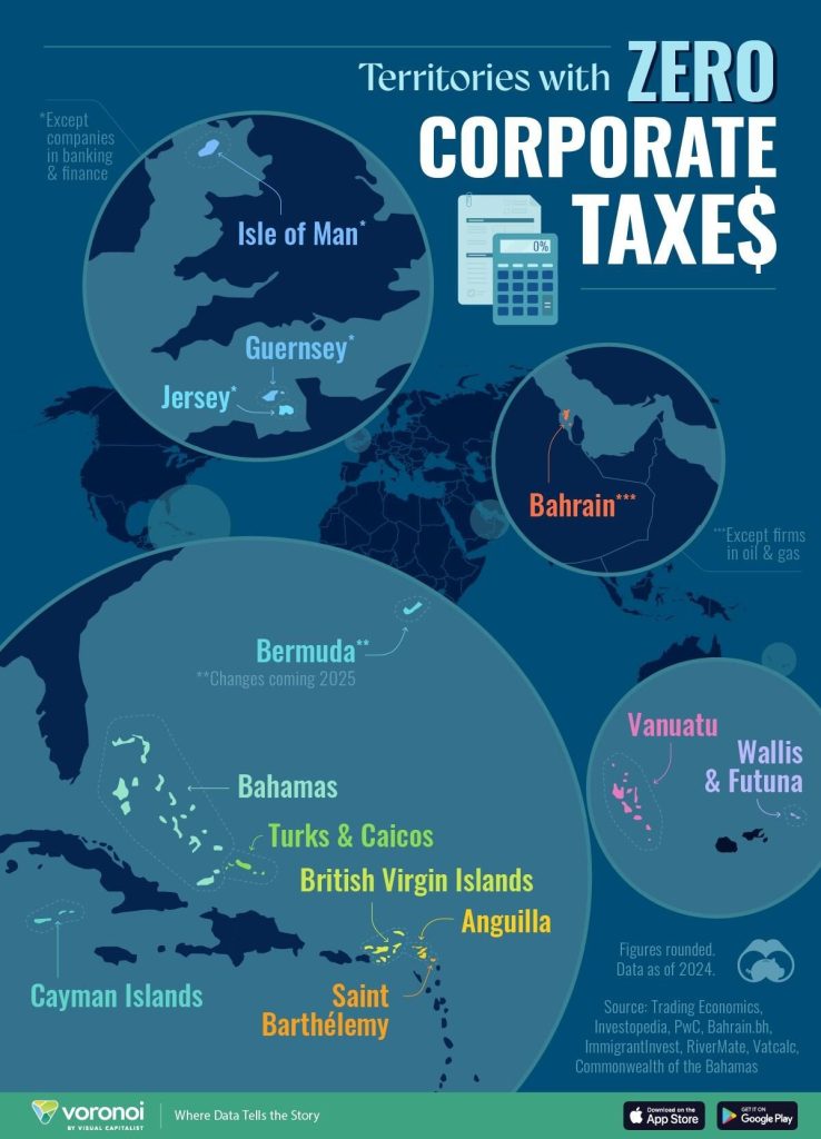 Pallavi Rao of Visual Capitalist maps out the very tiny list of places with no corporate taxes in the graphic below.