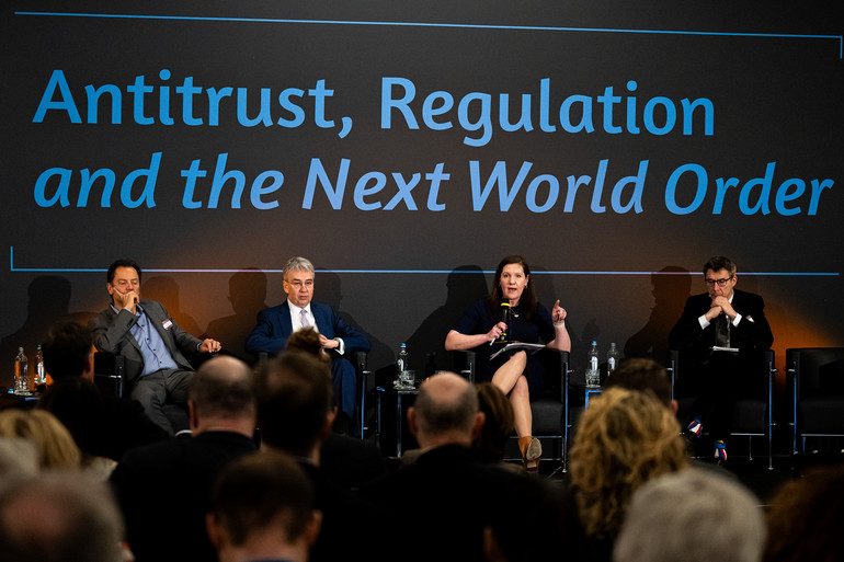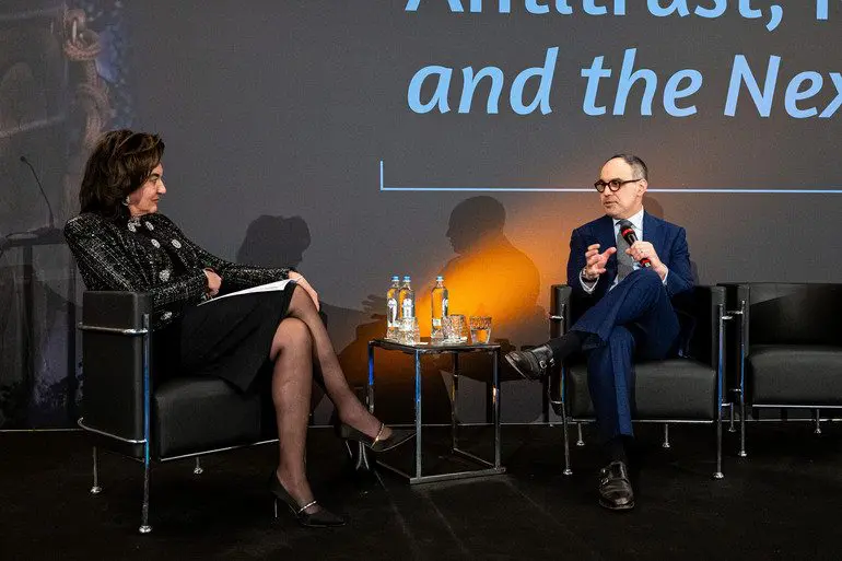 Held annually at the posh Steigenberger Wiltcher’s hotel, the annual convention has grown to be one of the most significant—if geekiest—tickets on the transatlantic business circuit. Around a thousand corporate attorneys, lobbyists, regulators, journalists, and students attended this year’s event to hear from the individuals spearheading that endeavor: Jonathan Kanter of the U.S. Department of Justice, Lina Khan of the Federal Trade Commission, and their equivalents from the European Union and other regions.