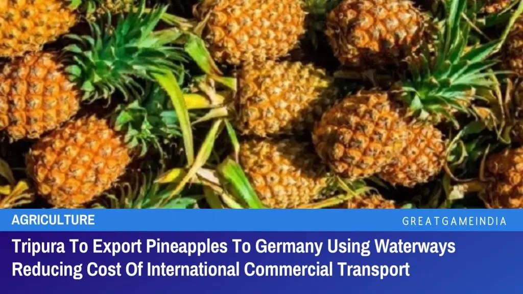 The transport of the first waterway consignment consisting of 40 metric tonnes of processed pineapples was initiated by Tripura CM Biplab Deb. The pineapples would be exported from the industrial growth centre located at Kumarghat in the Unokoti district of Tripura to Hamburg in Germany. The move is aimed at reducing the cost of commercial transport to the international market by utilizing waterways.