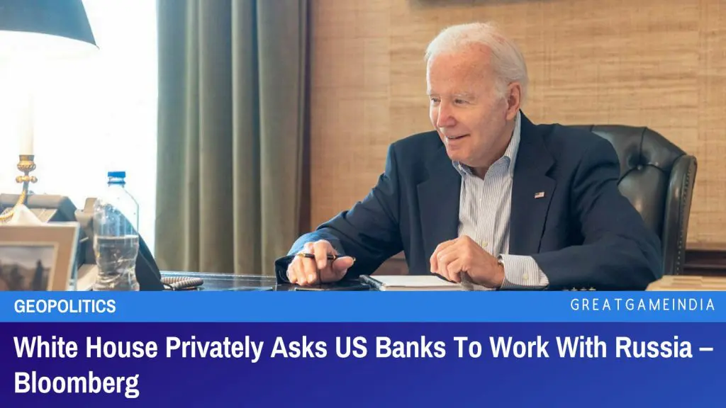 According to individuals familiar with the situation, the Biden administration is secretly advising major US banks like JPMorgan Chase and Citigroup to keep doing business with strategic Russian companies in spite of the sanctions placed on Moscow due to the crisis in Ukraine.