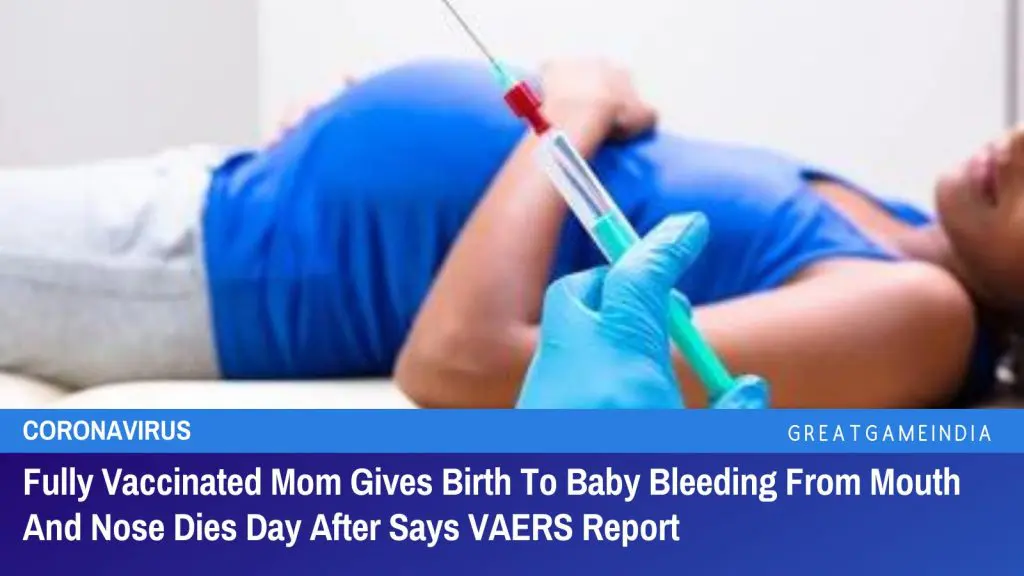 A fully vaccinated mom recently gave birth to a baby bleeding from mouth and nose according to VAERS report. The baby died a day after birth. The infant’s father stated his open suspicion that the vaccine was related to the death.