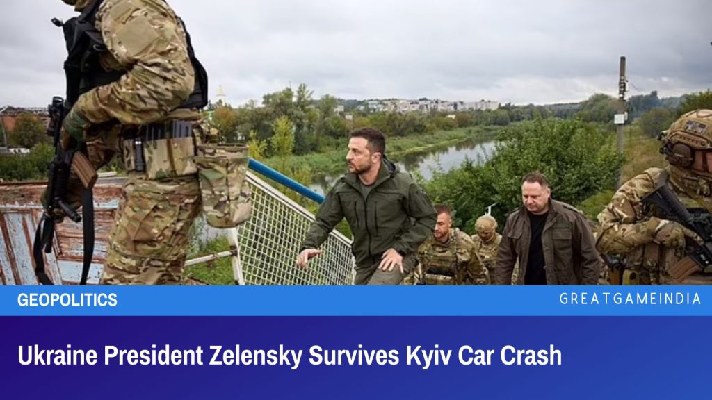 President Zelensky was analyzed by medical personnel but was not seriously injured after a car crashed into his motorcade, requiring hospital treatment for the driver, reports Mail Online.
